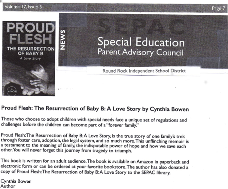 PROUD FLESH Book Signing at BACA Center with Shiners' representative - Round Rock, Texas.